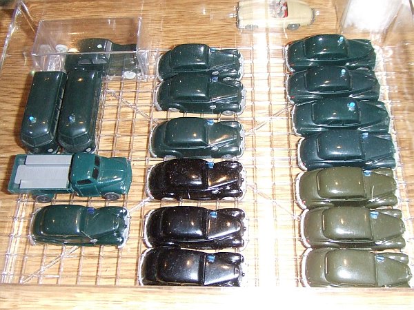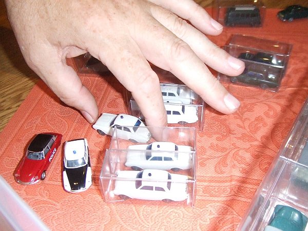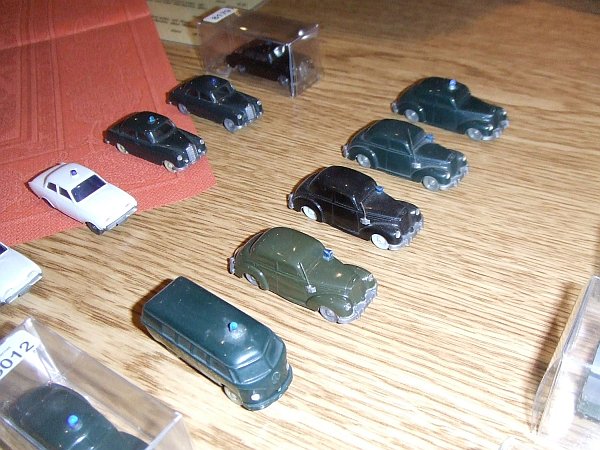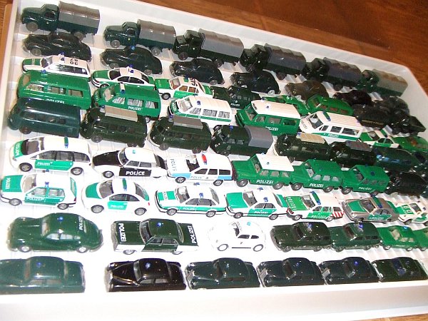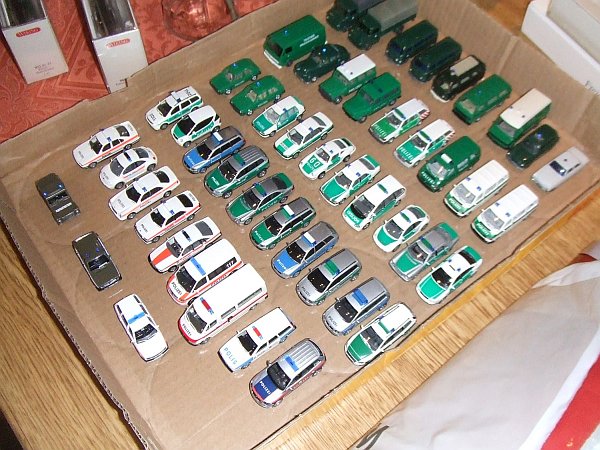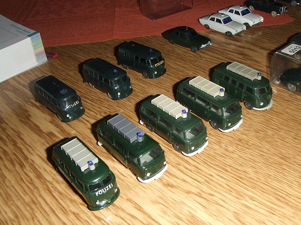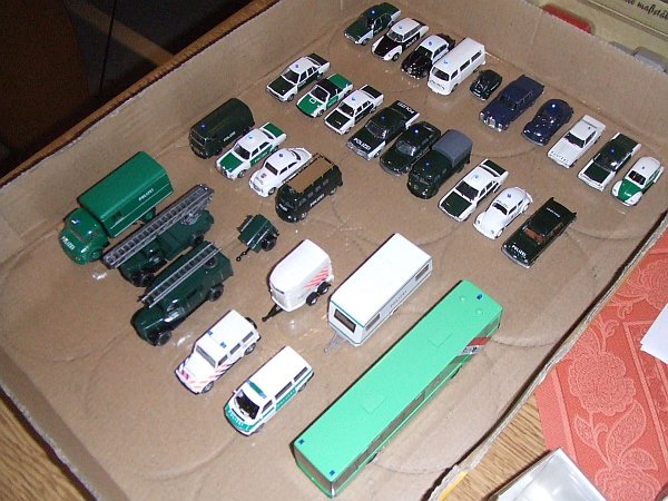 Nach Beendigung von Fußball-WM, Olympiade und Urlaubszeit trafen sich gutgelaunt 8 Sammlerfreunde zum lockeren Modellplausch. Neben dem Thema Polizei hatten wir auch Polizisten ausgelobt, doch lediglich 2 Sammler hatten dieses Zubehör dabei, da nicht Jedermanns Sammelgebiet. |