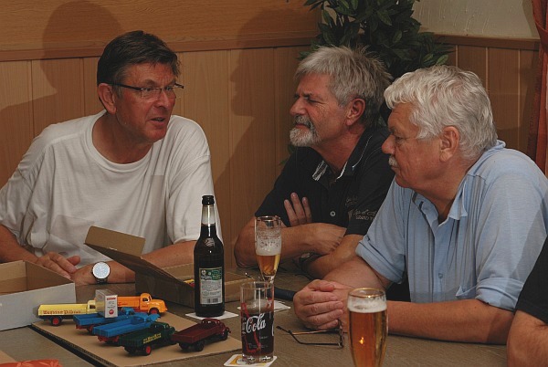 Das erste Treffen nach der Sommerpause: Trotz der großen Hitze hatten sich 12 Sammlerkollegen eingefunden, um das Thema des Abends (und noch vieles Andere) zu diskutieren: Volkswagen T1. Natürlich gab es auch viele dieser Modelle, darunter einige kuriose, vor Ort zu bestaunen. |